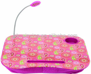 Fabric bottom contain microflber beads allowing the lapdesk to contour to your legs.In the rear there is a carry handle and zipper for easy access to the LED light battery compartment.
